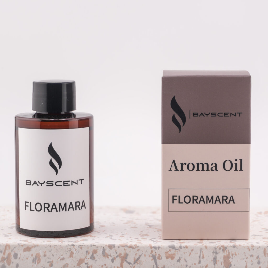 Ein blumiger Akkord aus Pfingstrose, Rose und Jasmin, verfeinert mit grünem Tee. FLORAMARA duftet frisch und elegant – perfekt für Kosmetiksalons, Modegeschäfte oder Wellnessräume. Ein Duft, der Leichtigkeit und Schönheit ausstrahlt.