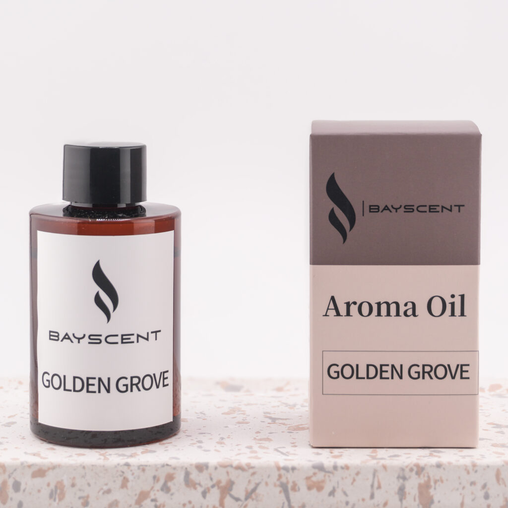 Ein warmer, goldener Duft aus Zedernholz, Orange und Honigblüte. GOLDEN GROVE schafft eine wohlige, sonnige Atmosphäre – ideal für Hotelzimmer, Empfangsräume oder Naturkosmetikstudios. Der Duft bringt Licht und Behaglichkeit in jeden Raum.