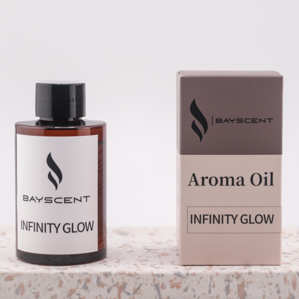 Ein mystischer Duft aus Amber, Moschus und feinen Gewürzen. INFINITY GLOW bringt Tiefe und Eleganz in den Raum – ideal für exklusive Boutiquen, Spa-Bereiche oder stilvolle Hotel-Lounges. Für ein Ambiente voller Charme und Wärme.