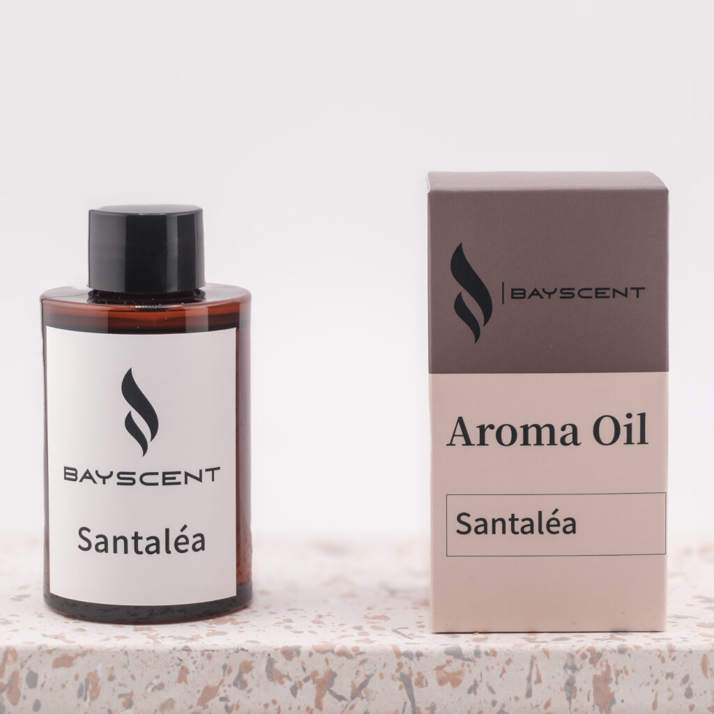 SANTALEA ist eine harmonische Komposition aus feinem Sandelholz, grünen Kräutern und einem Hauch Vanille. Der Duft beruhigt die Sinne und schafft eine warme, vertrauensvolle Umgebung – ideal für Beratungsräume, Yogastudios oder Wellness-Oasen.